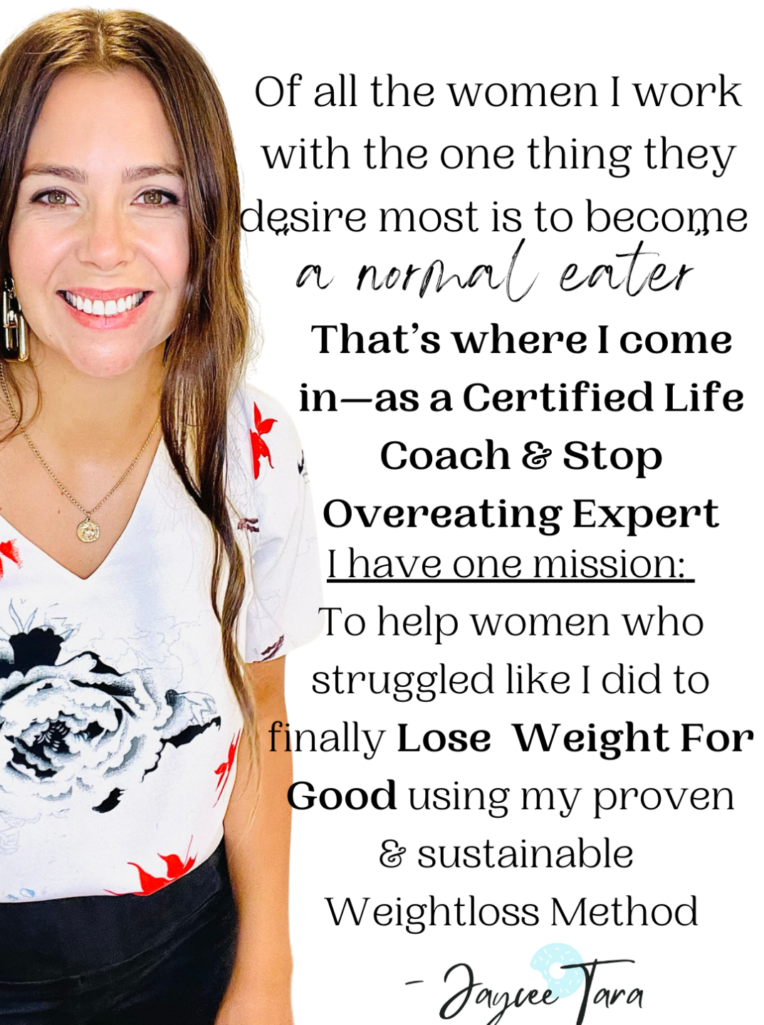 "So far I have lost 50 pounds and have maintained through some tough life times. I believe this time is truly different. I now believe I will reach my goal weight in a healthy and sustainable way.. Jaycee is truly a gifted coach. She has a wonderful way of pointing out your thoughts & actions that are keeping you stuck and helping you pivot to ones that serve your goals"